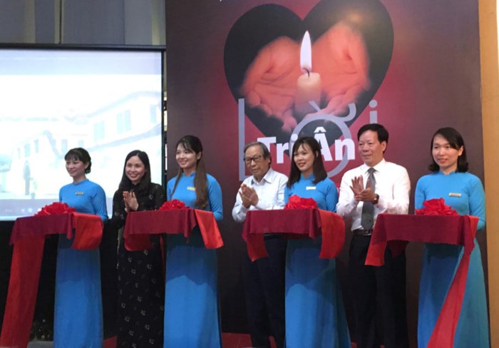 Delegates cut the ribbon to open the exhibition “The gratefulness”. (Photo: Anh Vu/CN) |