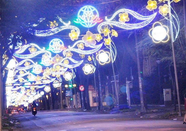 Major streets in HCM city were decorated with colorful flowers and recreational centers were packed with visitors. Firework displays were held in 8 places in the city.