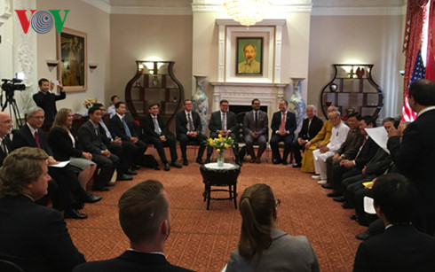 | The meeting between Vietnamese delegation and US religious dignitaries (Photo: VOV) |