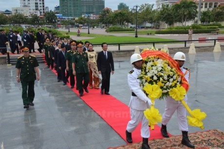 The Cambodian royal army, the Vietnamese Embassy in Cambodia, and the local overseas Vietnamese laid wreaths and paid tribute to fallen Vietnamese soldiers at a monument in Phnom Penh to commemorate the volunteer Vietnamese soldiers who died helping Cambodians escape the Pol Pot genocide.