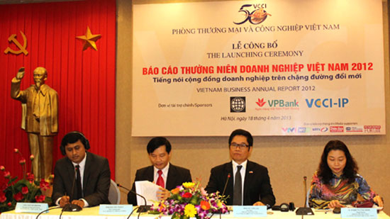 (VOVworld)- The Vietnam Chamber of Commerce and Industry on Thursday released its Vietnam Business Annual Report 2012. This year’s report focused on economic growth, trade balance, foreign direct investment and world market trends. The report says that Vietnam has more than 312,000 businesses in operation with declining labor force but increasing capital accumulation. 80% of them are limited liabilities and joint stock companies and many are moving to non-manufacturing sectors. The report makes recommendation on administrative reform, transparency and forecast to improve the business climate. Vietnam Business Annual Reports, published annually since 2006, provide an overview of the society and economy and business community.