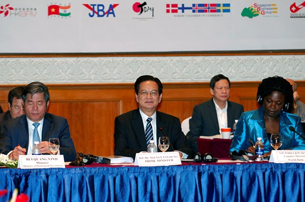 Prime Minister Nguyen Tan Dung said that based on the delegates’ opinions, the government would revise its policies and mechanisms to create the best possible conditions for business development. He added that in 2015 the government would focus on stabilizing the macro economy, achieving a GDP growth rate of 6.2% and an economic growth rate of 6.5-7%, maintaining inflation at 5%, and ensuring that public debts are within safe limits: “The Vietnamese government will continue to fine-tune market economy institutions, regarding it as a decisive breakthrough. Vietnam will accelerate legal and administrative reforms and continue to develop differing forms of markets, including capital, monetary, labor, and real estate. We will help businesses to improve their productivity and competitiveness. Transparency will be promoted in line with the policy of a market economy and a state governed by law.”
