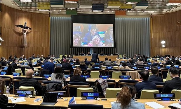 Ambassador Dang Hoang Giang, Permanent Representative of Vietnam to the UN, speaks at the first Informal Consultations on GDC in New York on January 30, 2023. (Photo: VNA) |