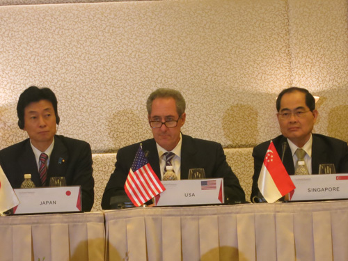 ![]() US Trade Representative Michael Froman (in the middle) says the talks in Singapore has made remarkable progress but hasn’t reached a final deal. (Photo: thanhnien.com.vn) |