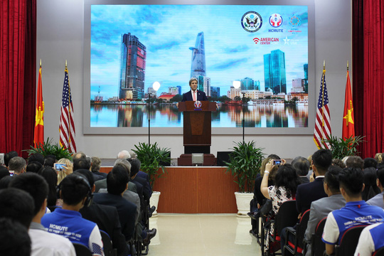 | US Secretary of State John Kerry at Ho Chi Minh City University of Technology and Education (Photo: ntd.com.vn) |