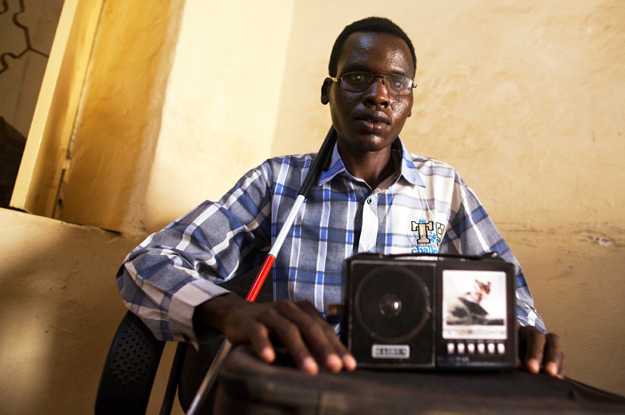 | A blind Sudanese student and his radio friend (Source: UN Radio) |