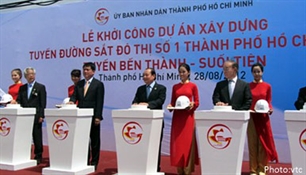 The construction of HCM City’s first Metro Line, from Ben Thanh market to Suoi Tien amusement park, officially got underway on Tuesday. The 20-km line will cost a total of over 820 million dollars, of which 83 percent comes from Japanese official development assistance. Metro Line No.1 is expected to be finished and in operation by early 2018. It will become the backbone of public transport in HCM City, carrying around 620 thousand passengers a day by 2020. At the ground-breaking ceremony, the Chairman of HCM City People’s Committee Le Hoang Quan said: “To successfully build our first metro line will create an important premise for carrying out similar future projects. It will motivate the country to complete the public transport network in general and the railway network in particular, helping to spur on the local economy and improve the standard of living for people in the city”