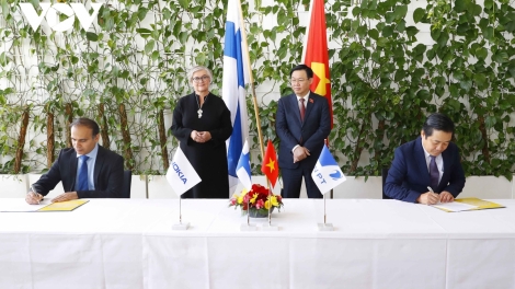 (VOVWORLD) -Vietnam Posts and Telecommunications Group (VNPT) and Nokia Group signed an agreement on cooperation in research to upgrade and develop VNPT's digital infrastructure. The signing ceremony took place on Friday in Finland and was witnessed by Vietnam’s National Assembly Chairman Vuong Dinh Hue and Speaker of the Finnish Parliament Anu Vehvilainen.