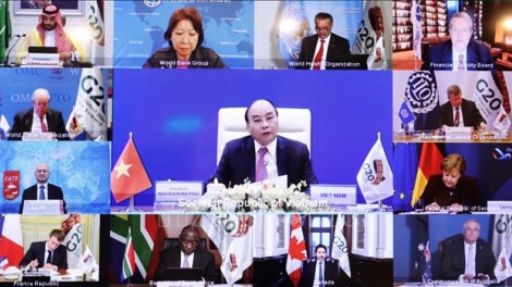 (VOVWORLD) - Prime Minister Nguyen Xuan Phuc underscored the importance of peace, stability, cooperation, and joint development at the second G20 Summit discussion, held online on Sunday.