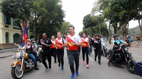 (VOVworld) – Around 9,000 people took part in relay run around Hanoi’s Hoan Kiem Lake on Sunday, the first of kind in Southeast Asia. Vietnam is the 6th leg of the run after Brunei, the Philippines, Laos, Myanmar, and Thailand to anticipate the Sea Games 29 and Para Games 9 to be held in Malaysia in August.
