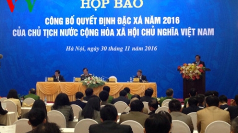 (VOVworld) - Vietnam has announced its 2016 amnesty decision. During an international press conference jointly organized by the Presidential Office, the Ministry of Public Security, the Supreme People’s Court, the Ministry of Foreign Affairs, the Government Office, and relevant agencies in Hanoi on Wednesday, Deputy Head of the Presidential Office, Giang Son, said the President had signed decision to pardon 4180 prisoners, including 14 foreigners.
