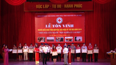 (VOVworld) – A ceremony to honor more than 200 outstanding individuals and organizations involved in blood donation was held in Hanoi on Sunday to mark World Blood Donor Day. Hanoi has been leading in blood donation in Vietnam for many years. Blood donor Nguyen Thi Thuan of Long Bien district said: “I’ve donated blood twice a year over the last 10 years. Leaders in my locality also donate their blood to encourage others to follow suit. Blood donation is a noble act and we should do it to save more lives.”