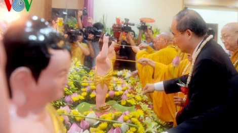(VOVworld) – The Vietnam Buddhist Sangha and the Hanoi Buddhist Sangha Executive Board organized a grand ceremony at Quan Su pagoda in Hanoi on Monday to mark Buddha’s 2559th birth anniversary, Vesak 2015.