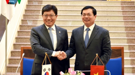 (VOVworld) – Vietnam and the Republic of Korea have signed a free trade agreement following two years of negotiations. The agreement was signed on Tuesday by Vietnam’s Minister of Industry and Trade Vu Huy Hoang and the Republic of Korea Minister of Industry and Energy Yoon Sang-jick in the presence of Vietnamese Prime Minister Nguyen Tan Dung and representatives of the two countries’ relevant ministries.