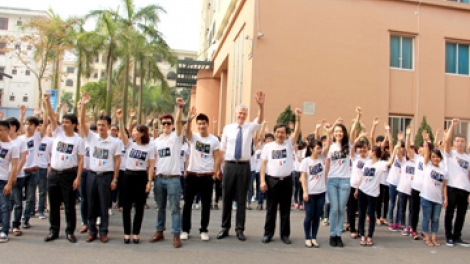 (VOVworld) – On Thursday, John Nielsen, Danish Ambassador to Vietnam and the Ambassador of the 2015 Earth Hour campaign and 500 students from Ho Chi Minh City’s Industrial University joined an activity tied to the Earth Hour campaign.