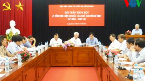 (VOVworld) – A workshop was held in Hanoi on Wednesday to review 45 years of the implementation of President Ho Chi Minh’s testament and the historical significance and great value of his testament to Vietnam’s revolutionary cause.