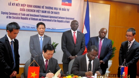 (VOVworld) – Vietnam and Haiti on Monday signed a framework agreement on trade and investment as a legal basis for stronger multifaceted cooperation. The signers were Minister of Industry and Trade Vu Huy Hoang and his Haitian counterpart Wilson Laleau.