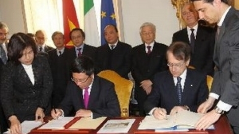 (VNA) – The Foreign Ministers of Vietnam and Italy signed a Joint Statement featuring the two countries’ establishment of their strategic partnership as part of Party leader Nguyen Phu Trong’s visit to the country.