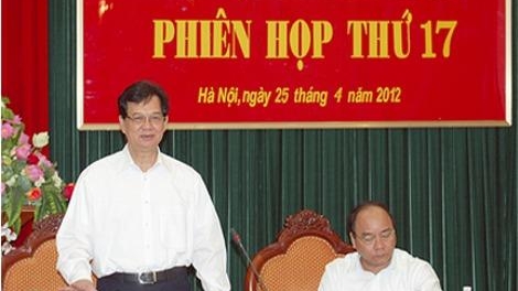 (VOVWorld) – Prime Minister Nguyen Tan Dung has urged all ministries, sectors and agencies to combat corruption as stated in the resolution made at the 11th National Party Congress. Dung co-chaired a meeting with Deputy Prime Minister Nguyen Xuan Phuc in Hanoi on Wednesday