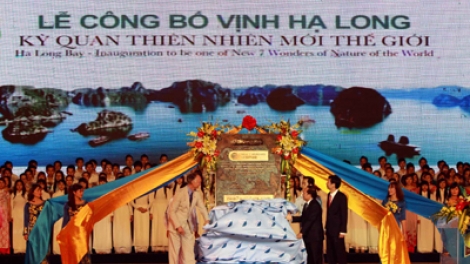 (VOVworld) - Thousands of people gathered at the My Dinh National Stadium on Friday to witness the official naming of Ha Long Bay as one of the New 7 Wonders of Nature. Addressing the ceremony, Deputy Prime Minister Nguyen Thien Nhan said that Vietnam is proud to boast many tangible and intangible heritages, including Ha Long Bay.