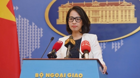 (VOVWORLD) - Vietnam strongly protests to China's inclusion of a part of Hoang Sa (Paracel) in its military exercise in the East Sea and demands that China respect Vietnam's sovereignty over Hoang Sa, said spokesperson of the Ministry of Foreign Affairs Pham Thu Hang at the ministry’s regular press conference on Thursday.