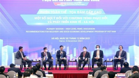 (VOVWORLD) - The Vietnam Economic Forum 2021, themed “Recovery and Sustainable Development”, took place in Hanoi on Sunday. Chaired by National Assembly (NA) Chairman Vuong Dinh Hue, the event was also connected with localities nationwide and some places in the US, France, and Thailand via videoconference.
