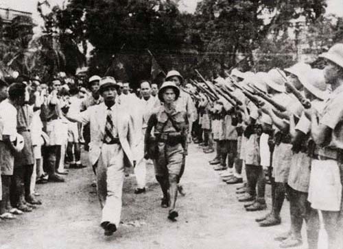 On August 26th, 1945, Commander of the Vietnam Propaganda Liberation Army Vo Nguyen Giap watched the first military parade in Hanoi after wresting back power.