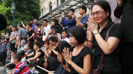 | People burst into tears when seeing General Giap's coffin pass by. (Photo: dantri.com.vn) |