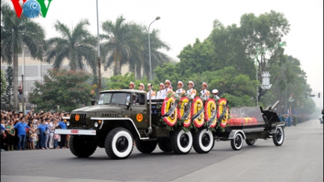 (VOVworld) - After leaving the National Funeral House, the motorcade carrying General Giap’s coffin traveled through 12 main streets in Hanoi before heading to Noi Bai International Airport.