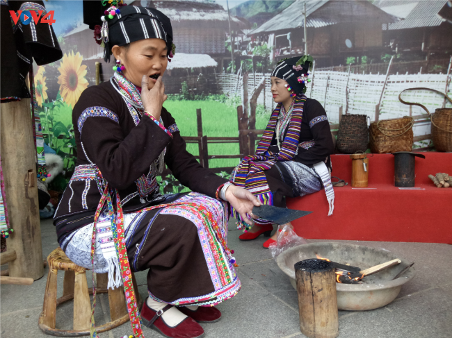 According to Lo Van Sau of Hon hamlet in Tam Duong district, Lu women make vegetable dyes for their teeth from a special local plant, which is hung to dry and burnt to coals. This substance is then put into a bamboo tube and placed next to the fire stove. The tube is covered with a cast iron plate and as the tube gets hotter, it creates steam, which coats the plate with a black substance ready for dying teeth.