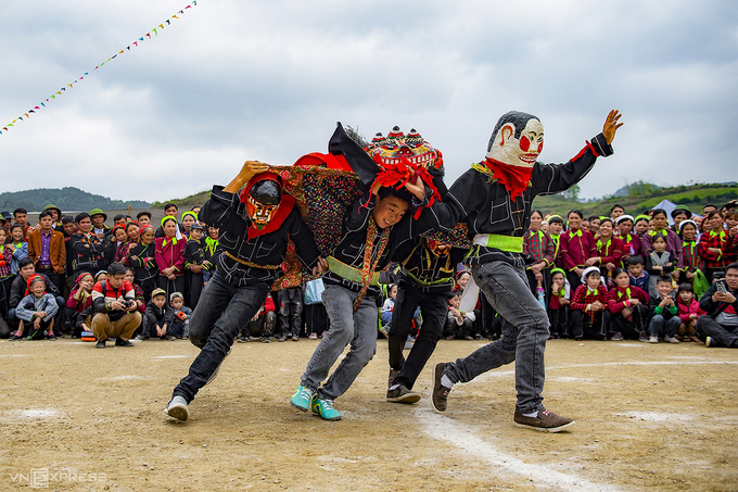The lion-cat dance is a folk activity that, among the Tay and Nung people, symbolizes the conquering of natural challenges.