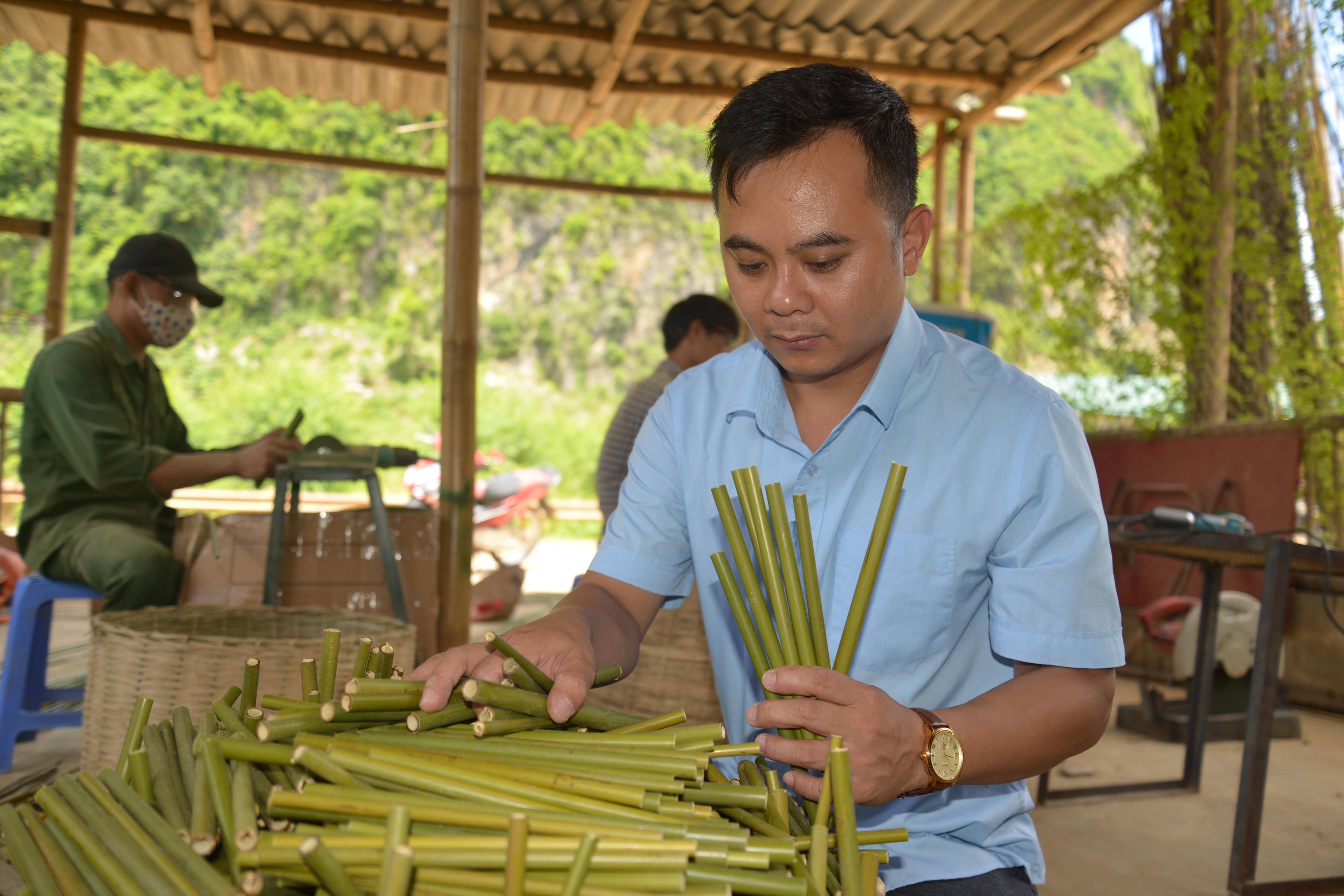 The straw making process is mostly done manually and the finished straws retain the color and fragrance of the bamboo (Photo: VOV)