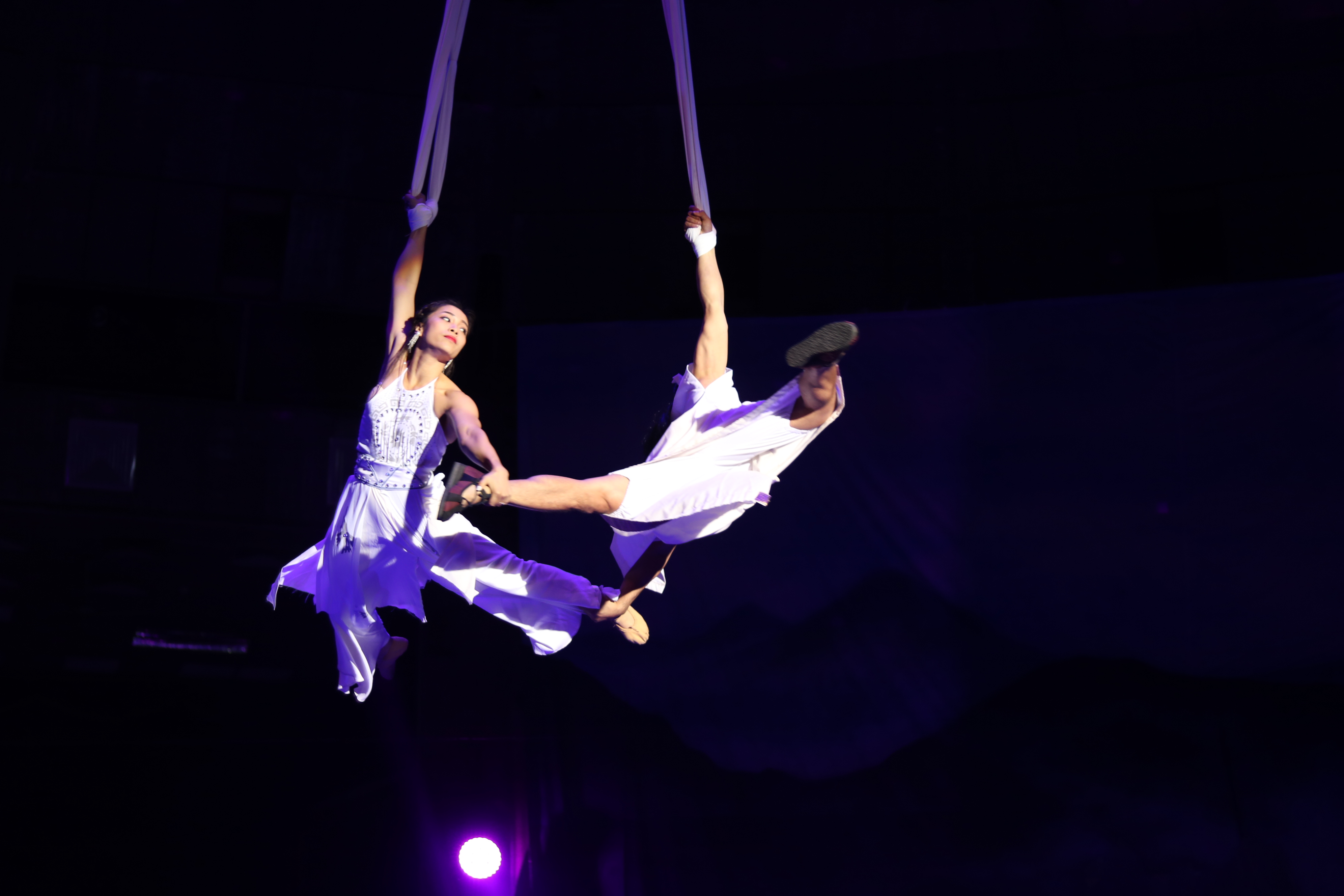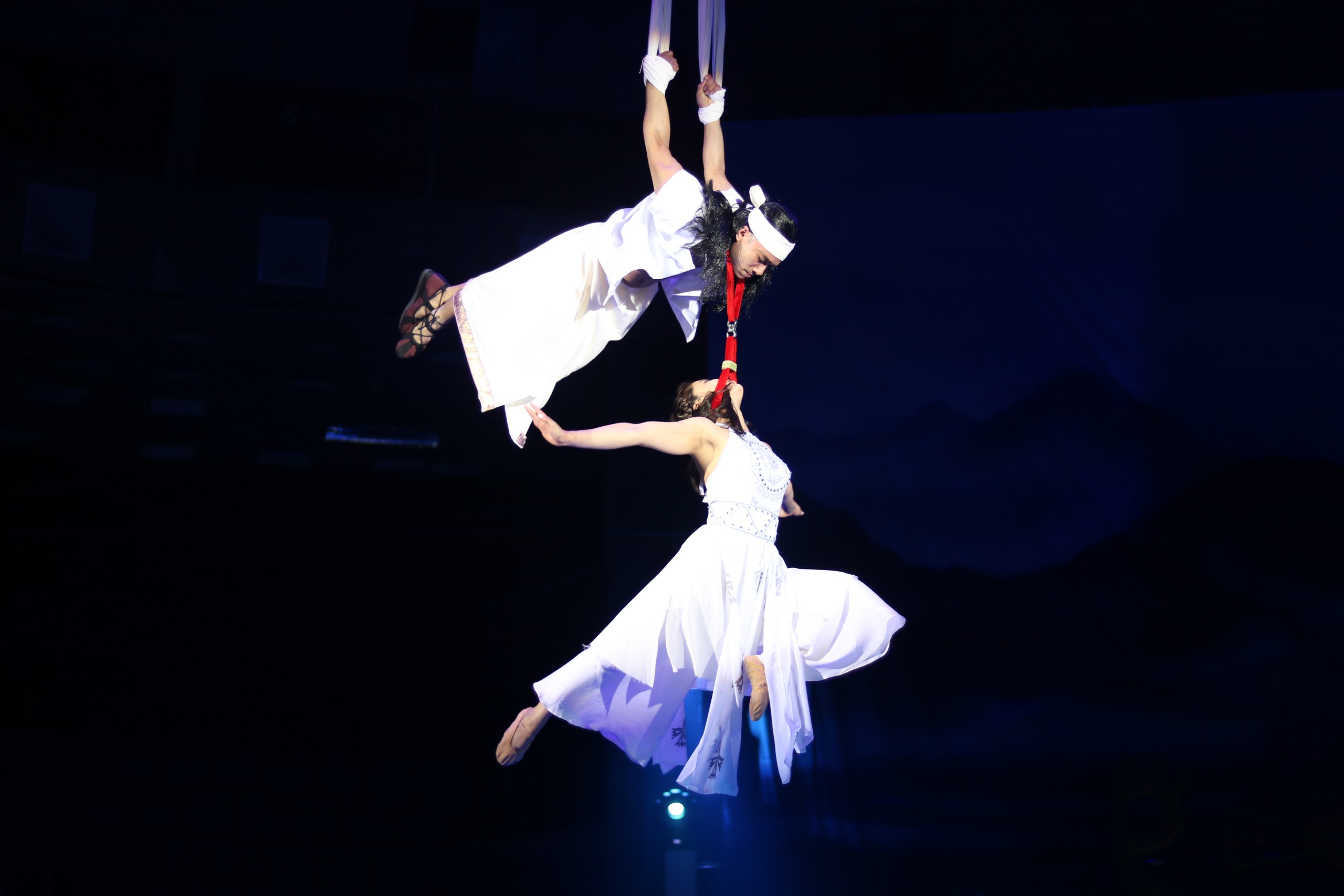 The two main characters sing in the air. (Photo: The Vietnam Circus Federation)