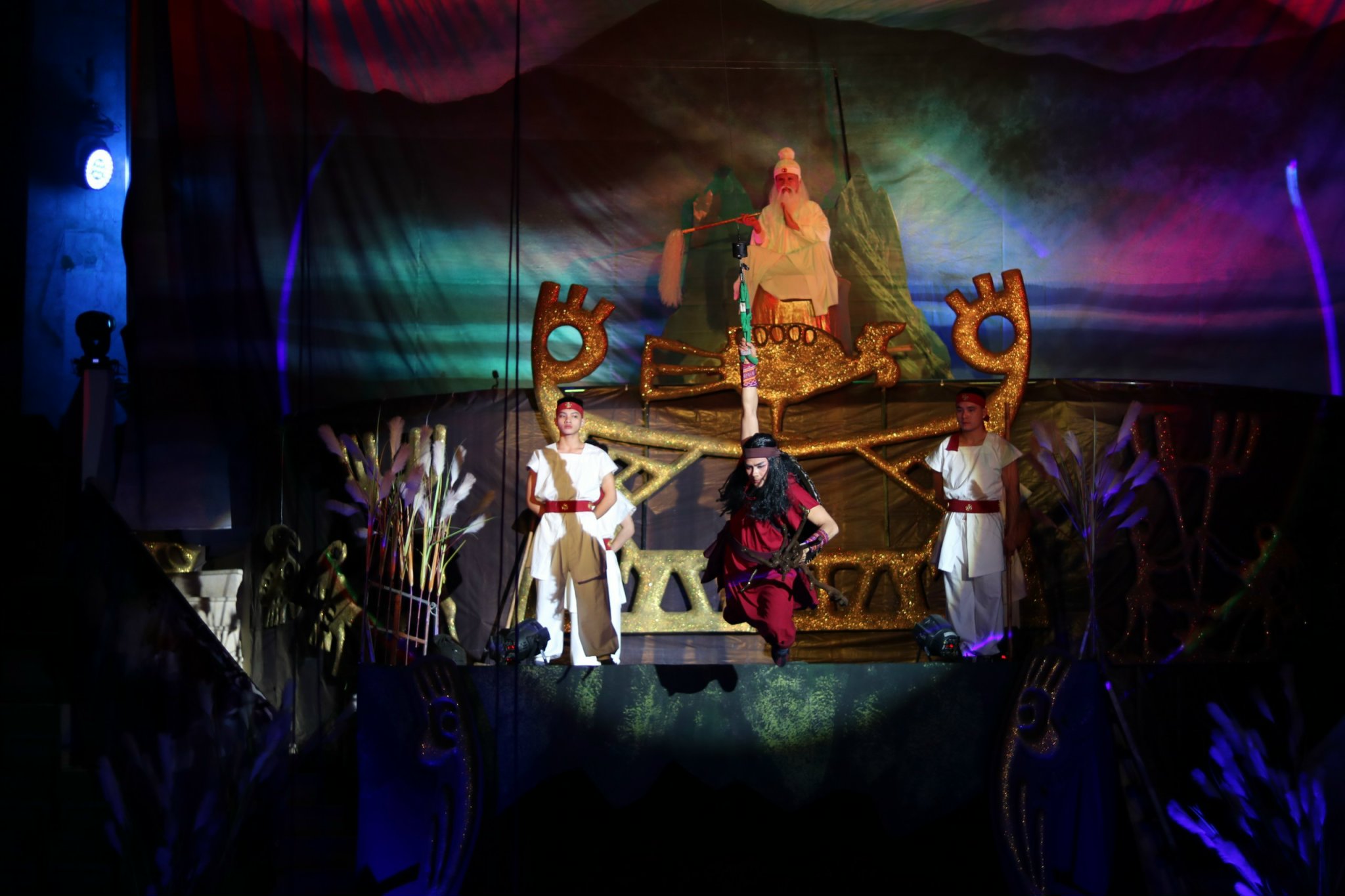The Buddha gives Chu Dong Tu a magic stick to recue his fellow villagers. (Photo: The Vietnam Circus Federation)