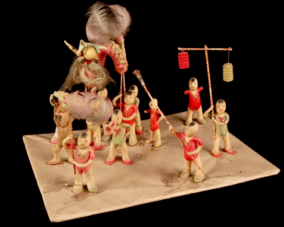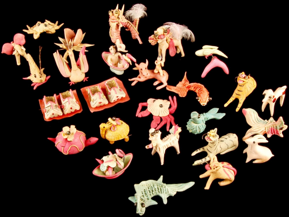 Traditional toy figurines are not just popular folk toys, they also serve as religious objects. The figurines are considered a charm to protect the children from bad spirits. Toy figurines in the shape of five-fruit trays, horses, or embroidered shoes are used as offerings at the temples or pagodas. The images of young ladies in red, green or white dresses standing on boats or living in the mountains represent the Four Mother Goddesses of the Mother Goddess worshipping religion.
