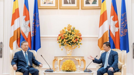 (VOVWORLD) - ในกรอบการเยือนกัมพูชา วันที่ 24 มกราคม พลเอก โตเลิม รัฐมนตรีกระทรวงรักษาความมั่นคงทั่วไปได้เข้าเยี่ยมคารวะนายกรัฐมนตรีกัมพูชา ฮุน มาเนต