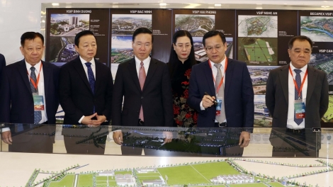ประธานประเทศ หวอวันเถือง เข้าร่วมพิธีรำลึกครบรอบ 10 ปีการก่อตั้งเขตนิคมอุตสาหกรรมเวียดนาม-สิงคโปร์ในจังหวัดกว๋างหงาย