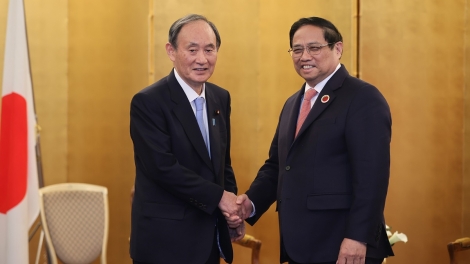 นายกรัฐมนตรี ฝ่ามมิงชิ้ง ให้การต้อนรับนาย ซูงะ โยซิฮิเดะ อดีตนายกรัฐมนตรีญี่ปุ่นและนายกรัฐมนตรีสิงคโปร์ ลีเซียนลุง