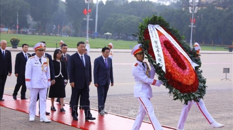 (VOVWORLD) -ในกรอบการเยือนประเทศเวียดนามอย่างเป็นทางการ เช้าวันที่ 13 ธันวาคม นาย สีจิ้นผิง เลขาธิการใหญ่พรรคคอมมิวนิสต์จีนและประธานประเทศจีนได้ไปวางพวงมาลาที่สุสานประธานโฮจิมินห์ในกรุงฮานอย