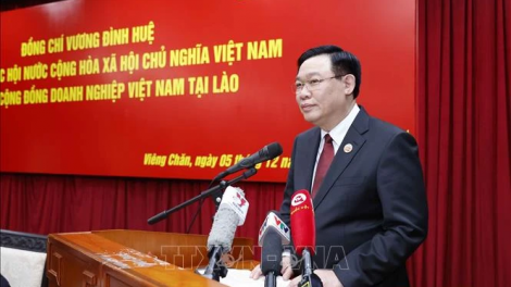 ประธานสภาแห่งชาติ เวืองดิ่งเหวะ พบปะกับตัวแทนชมรมสถานประกอบการและชาวเวียดนามที่อาศัยในประเทศลาว
