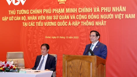 (VOVWORLD) -ในกรอบการอยู่ระหว่างการทำงานในประเทศสหรัฐอาหรับเอมิเรตส์ เมื่อค่ำวันที่ 1 ธันวาคม ณ เมืองดูไบ นายกรัฐมนตรี ฝ่ามมิงชิ้ง และภริยาพร้อมคณะผู้แทนเวียดนามได้พบปะกับเจ้าหน้าที่สถานทูตและชมรมชาวเวียดนามในสหรัฐอาหรับเอมิเรตส์