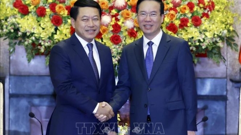 (VOVWORLD) - วันที่ 22 พฤศจิกายน ณ กรุงฮานอย นาย หวอวันเถือง ประธานประเทศและนาย ฝ่ามมิงชิ้ง นายกรัฐมนตรี ได้ให้การต้อนรับนาย สะเหลิมไซ กมมะสิด รองนายกรัฐมนตรีและรัฐมนตรีต่างประเทศลาวในโอกาสเดินทางมาเยือนเวียดนามและร่วมเป็นประธานการประชุมทาบทามความคิดเห็นทางการเมืองระดับรัฐมนตรีต่างประเทศเวียดนาม-ลาวครั้งที่ 10