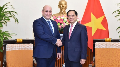 (VOVWORLD) - บ่ายวันที่ 10 พฤศจิกายน ณ สำนักงานของกระทรวงการต่างประเทศเวียดนาม นาย บุ่ยแทงเซิน รัฐมนตรีว่าการกระทรวงการต่างประเทศเวียดนามได้ให้การต้อนรับนาย Alexander Khvtisiashvili รัฐมนตรีช่วยว่าการกระทรวงการต่างประเทศจอร์เจียที่กำลังอยู่ระหว่างการเยือนเวียดนาม
