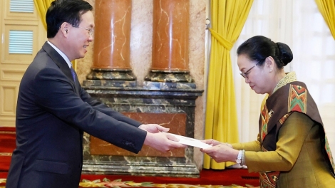 ประธานประเทศ หวอวันเถือง ให้การต้อนรับเอกอัครราชทูตเวเนซุเอลาและลาวที่เข้ายื่นสาส์นตราตั้ง