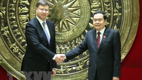 (VOVWORLD) -เมื่อบ่ายวันที่ 2 พฤศจิกายน ณ อาคารสภาแห่งชาติ นาย เจิ่นแทงเหมิน รองประธานสภาแห่งชาติเวียดนามได้ให้การต้อนรับนาย Valdis Dombrovski รองประธานคณะกรรมาธิการยุโรปหรือ EC และกรรมการดูแลด้านการค้าของอียู