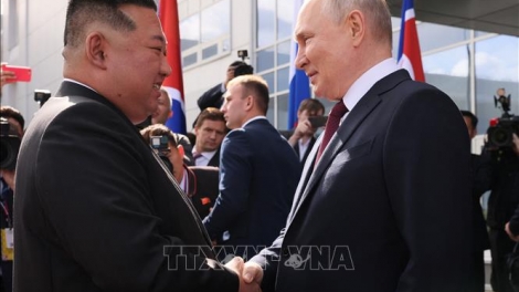 (VOVWORLD) -วันที่ 13 กันยายน ณ ศูนย์อวกาศในภูมิภาคตะวันออกไกลของรัสเซีย นาย คิม จองอึน ผู้นำสาธารณรัฐประชาธิปไตยประชาชนเกาหลีได้พบปะกับนาย วลาดีเมียร์ ปูติน ประธานาธิบดีรัสเซีย