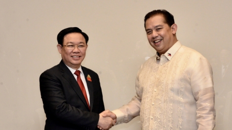 (VOVWORLD) - ในโอกาสเข้าร่วมการประชุมสมัชชาใหญ่รัฐสภาประชาชาติแห่งเอเชียตะวันออกเฉียงใต้หรือ AIPA ครั้งที่ 44 ณ กรุงจาการ์ตา ประเทศอินโดนีเซีย เมื่อบ่ายวันที่ 6 สิงหาคม นาย เวืองดิ่งเหวะ ประธานสภาแห่งชาติได้พบปะกับนาย Ferdinand Martin Romualdez ประธานสภาล่างฟิลิปปินส์