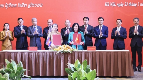 (VOVWORLD) - เมื่อเช้าวันที่ 23 มีนาคม ณ กรุงฮานอย นาง บุ่ยถิมิงหว่าย ประธานแนวร่วมปิตุภูมิเวียดนามและนาง Men Sam An ประธานแนวร่วมสามัคคีเพื่อพัฒนาปิตุภูมิกัมพูชา ประธานสมาคมมิตรภาพกัมพูชา-เวียดนามได้เป็นประธานการเจรจาและพิธีลงนามข้อตกลงความร่วมมือระหว่างแนวร่วมปิตุภูมิเวียดนามกับแนวร่วมสามัคคีเพื่อพัฒนาปิตุภูมิกัมพูชา