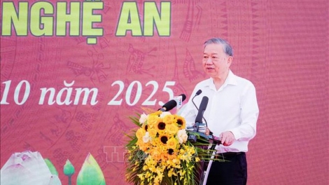 เลขาธิการใหญ่พรรค โตเลิม เข้าร่วมพิธีวางศิลาฤกษ์ก่อสร้าง โรงเรียนประจำสำหรับชนกลุ่มน้อยนางอย จังหวัดเหงะอาน