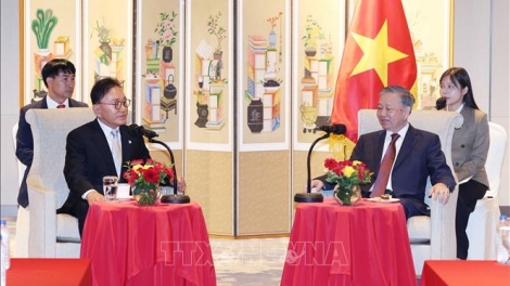 เลขาธิการใหญ่พรรค โตเลิม ประชุมกับประธานรัฐสภาสาธารณรัฐเกาหลี Woo Won Sik